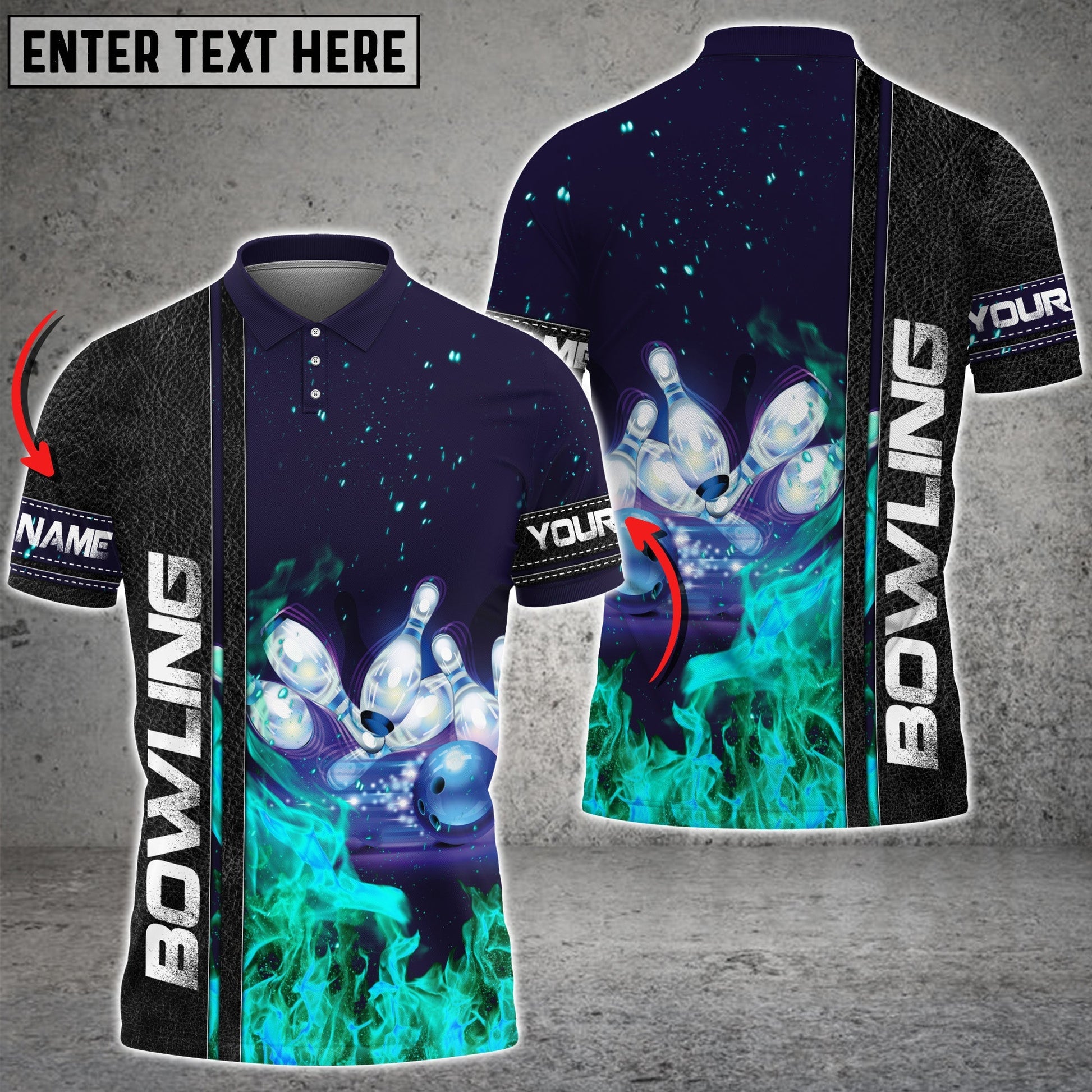 BlueJose Dark Blue Bowling Cyan Flame Customized All Over Printed Shirt