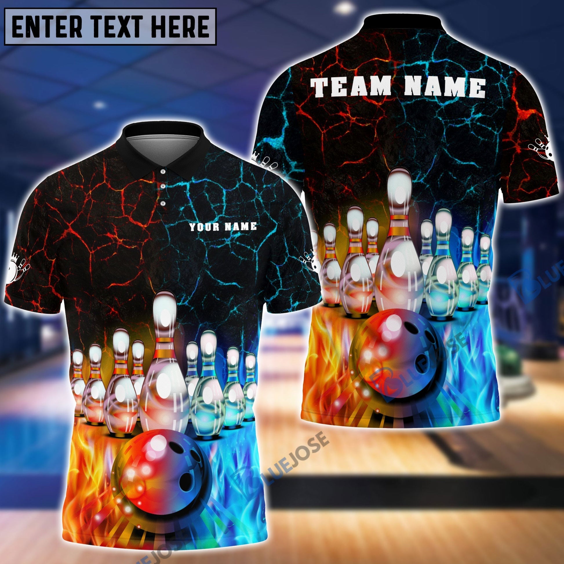 BlueJose Fire and Water Bowling And Pins Personalized Name Team Name 3D Shirt, Personalized Shirts For Bowling Players