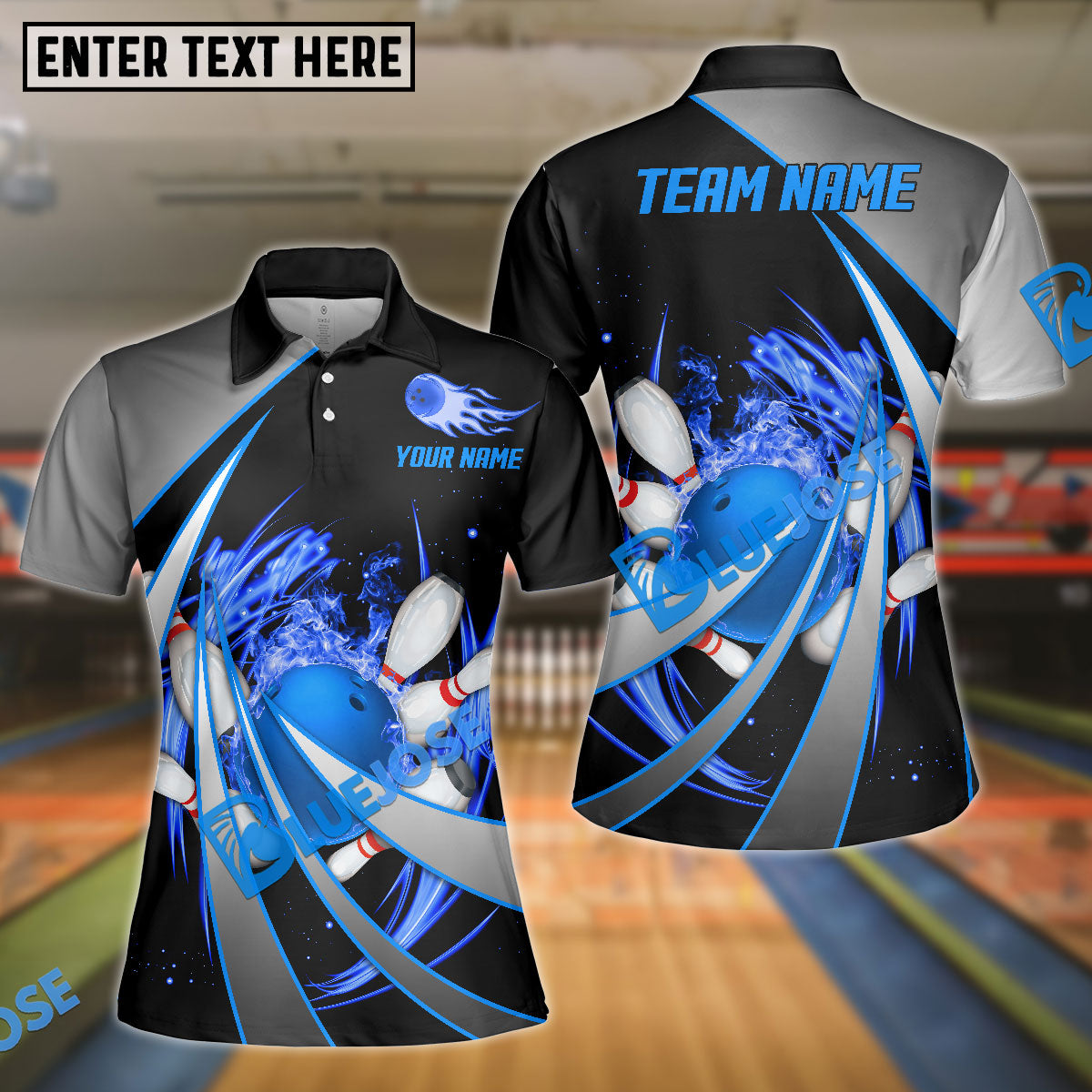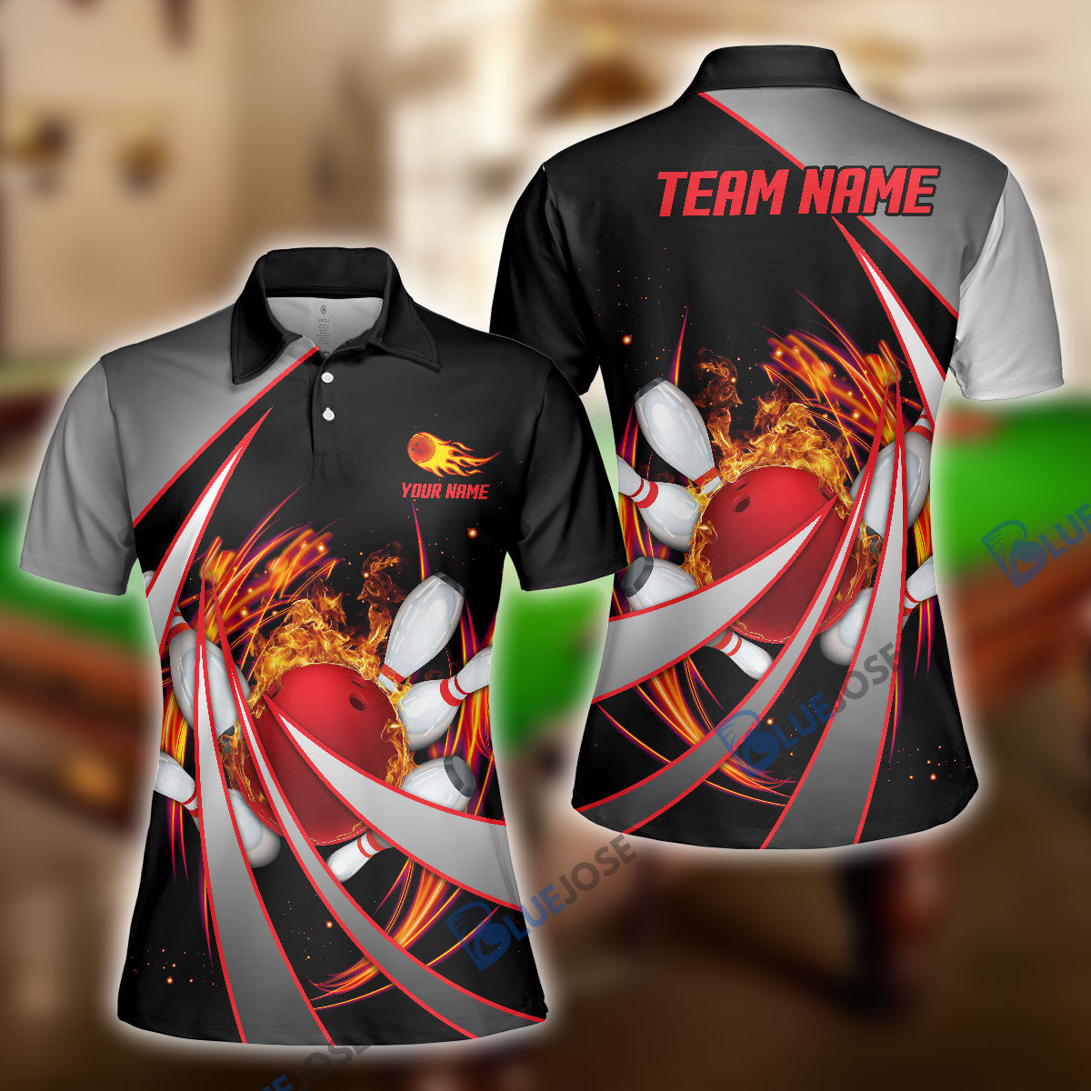 BlueJose Flame Bowling And Pins Tornado Pattern Multicolor Customized Name 3D Shirt for Women