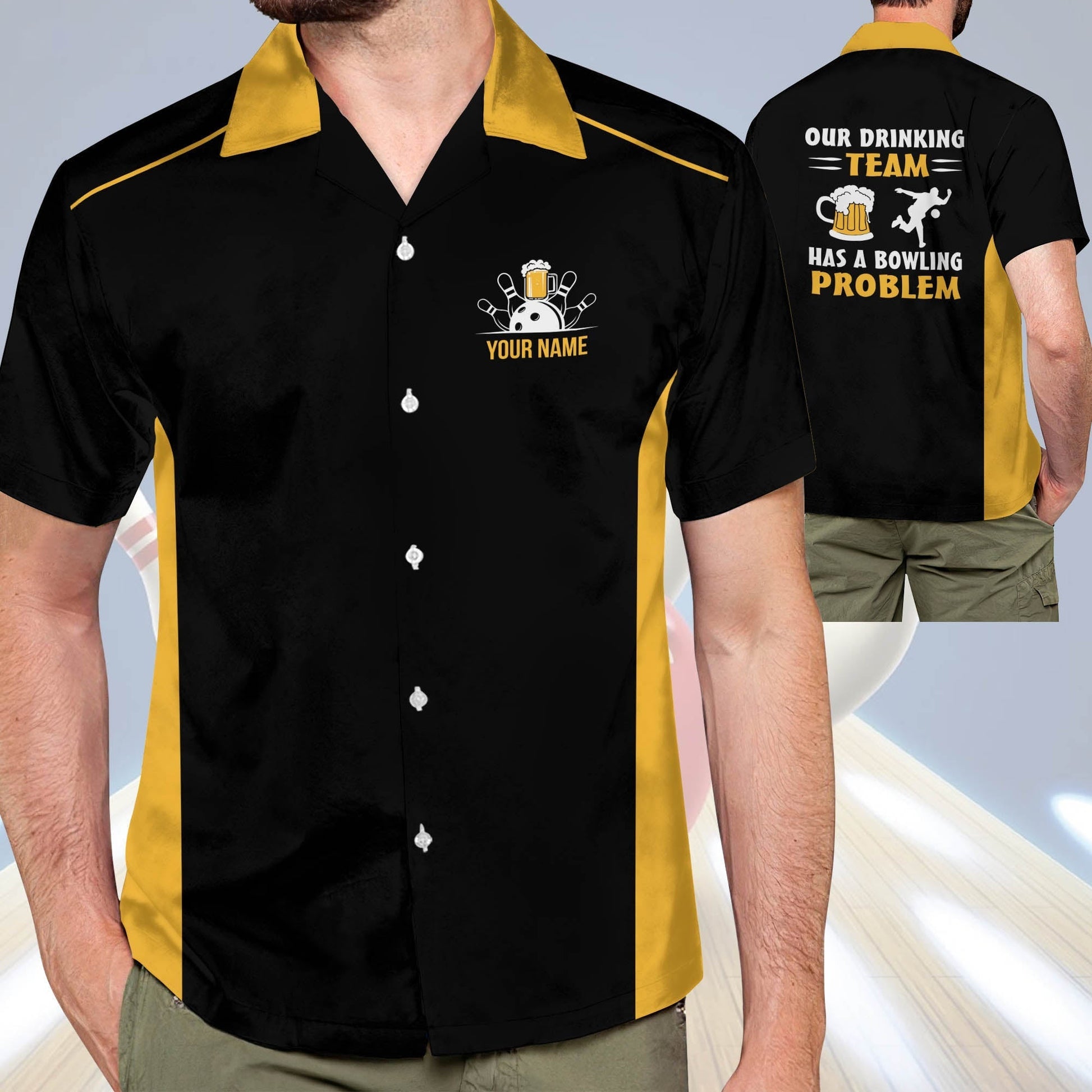 BlueJose Our Drinking Team Has A Bowling Problem Personalized Name Hawaiian Shirt