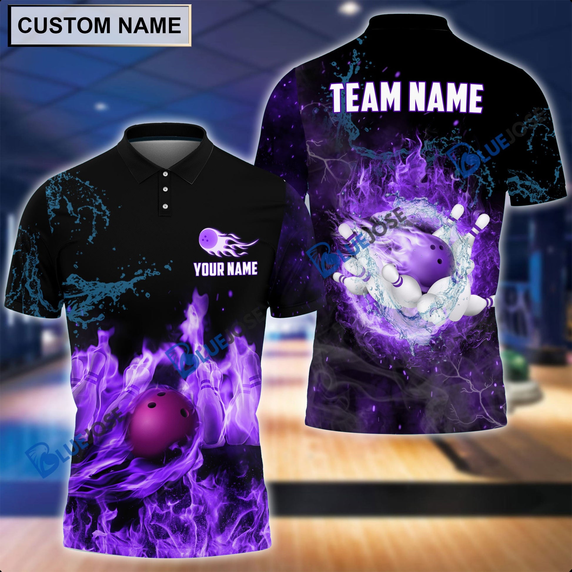 BlueJose Personalized Name and Team Name Fire Light Bowling Player Multicolor 3D Shirt