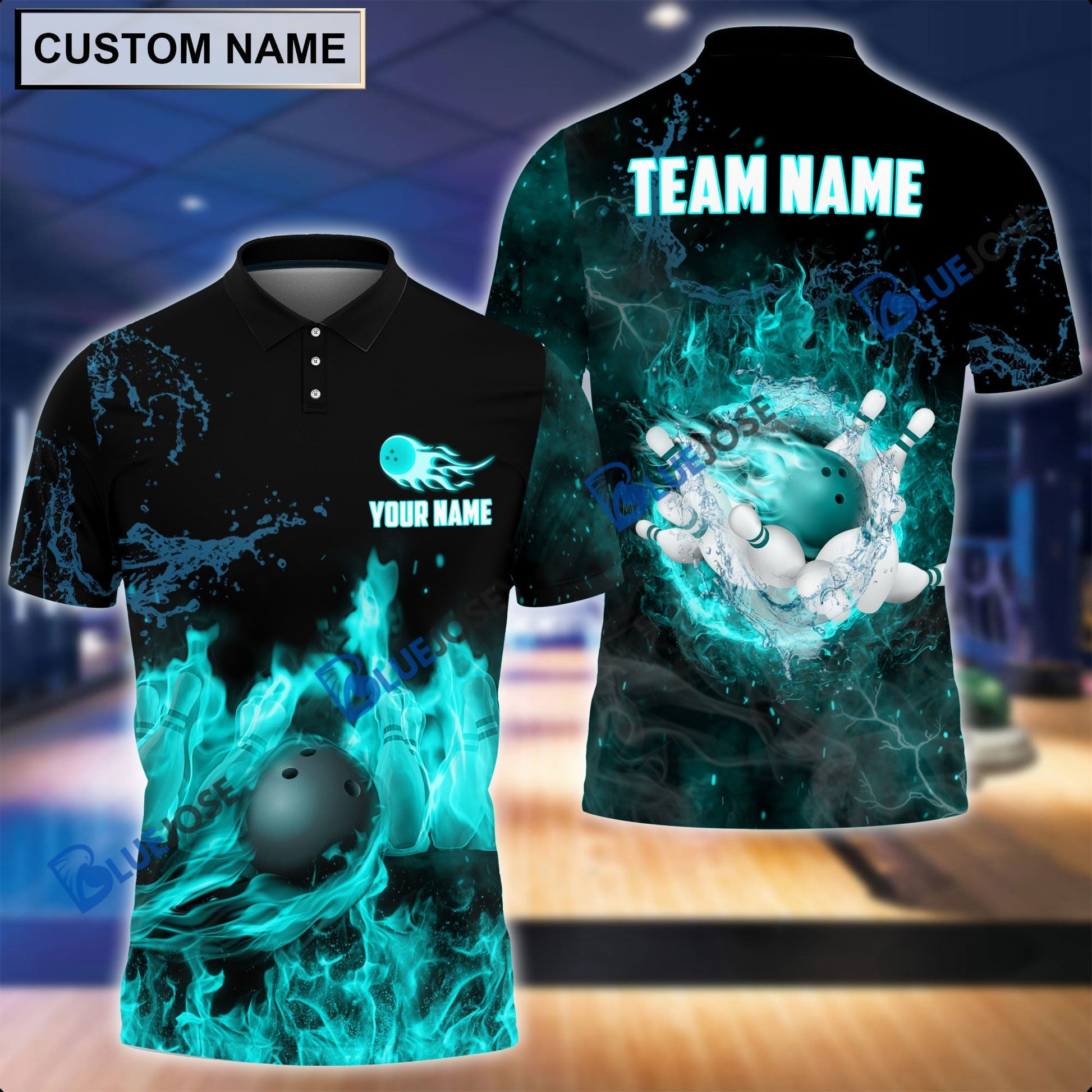 BlueJose Personalized Name and Team Name Fire Light Bowling Player Multicolor 3D Shirt, Personalized Shirts For Bowling Players