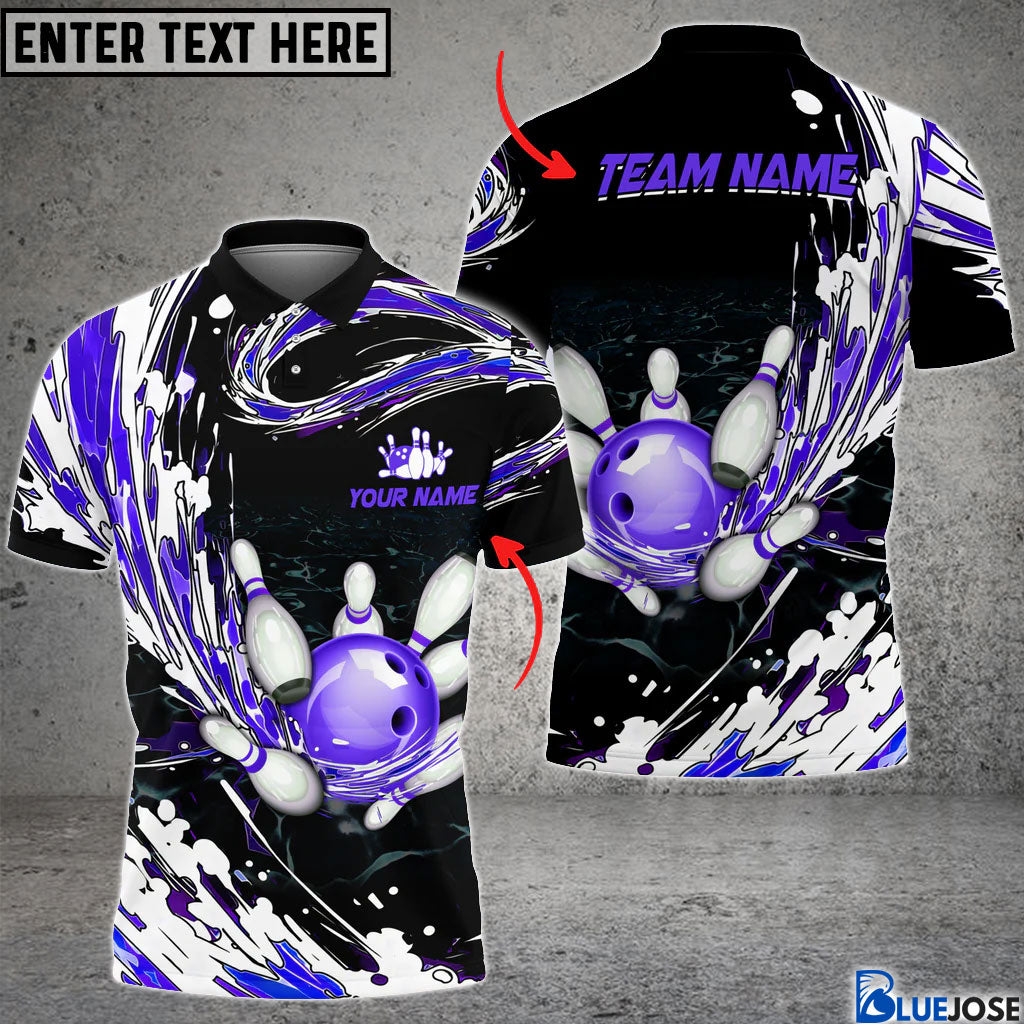 BlueJose Personalized Name Waves Bowling And Pins Multicolor 3D Shirt (4 Colors), Personalized Shirts For Bowling Players