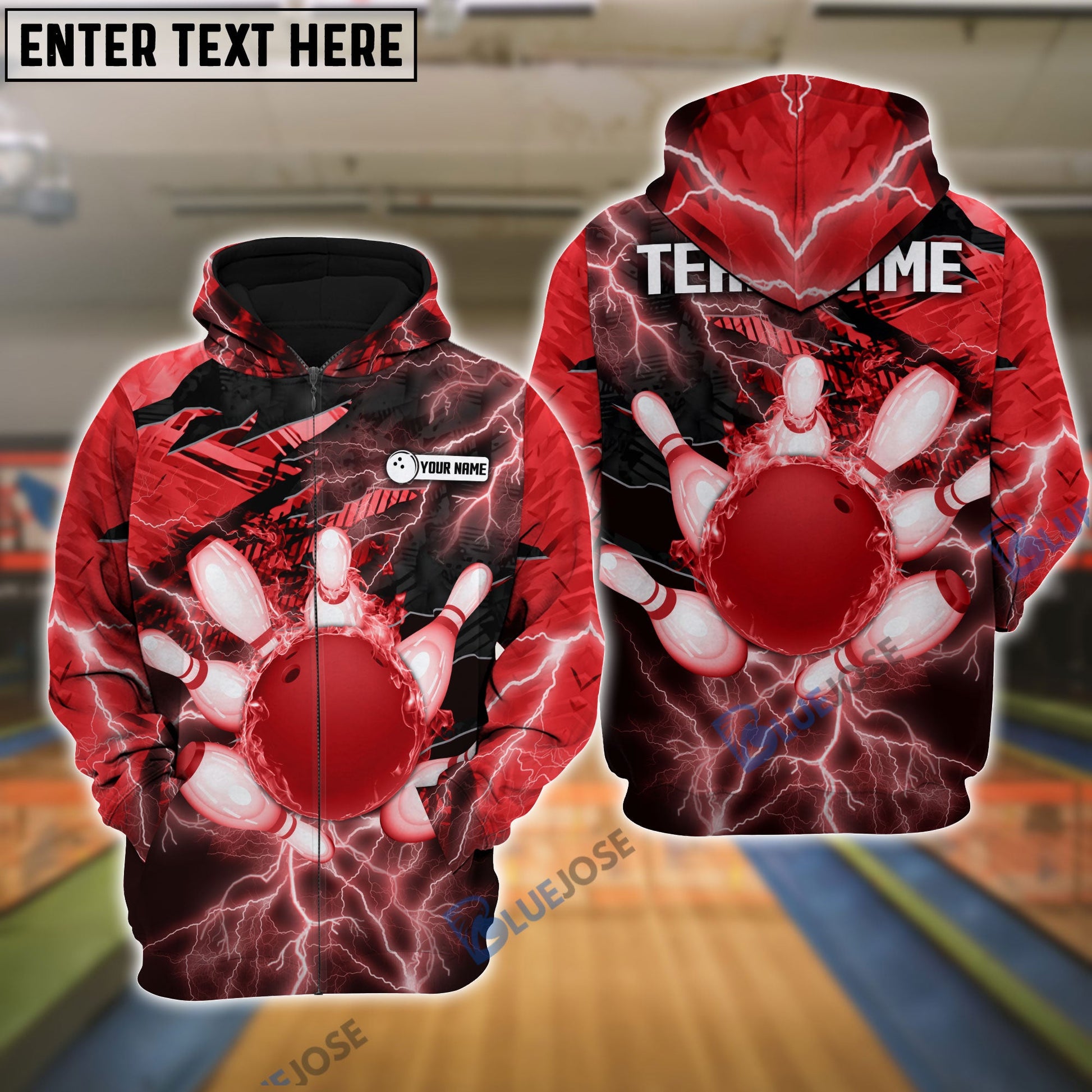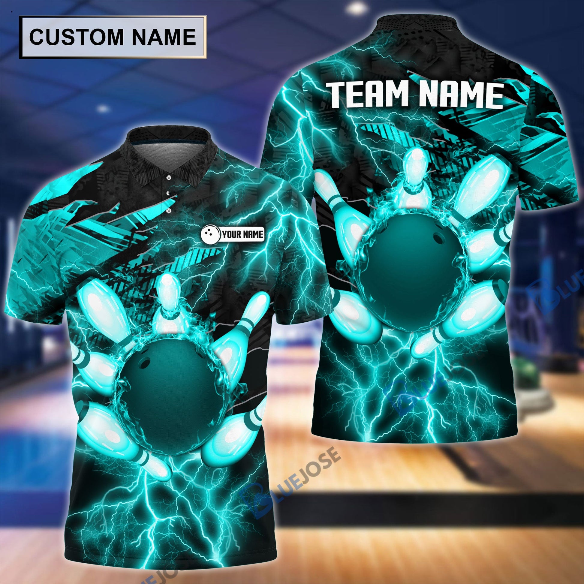 BlueJose Thunder Power Bowling And Pins Personalized Name Team Name 3D Shirt