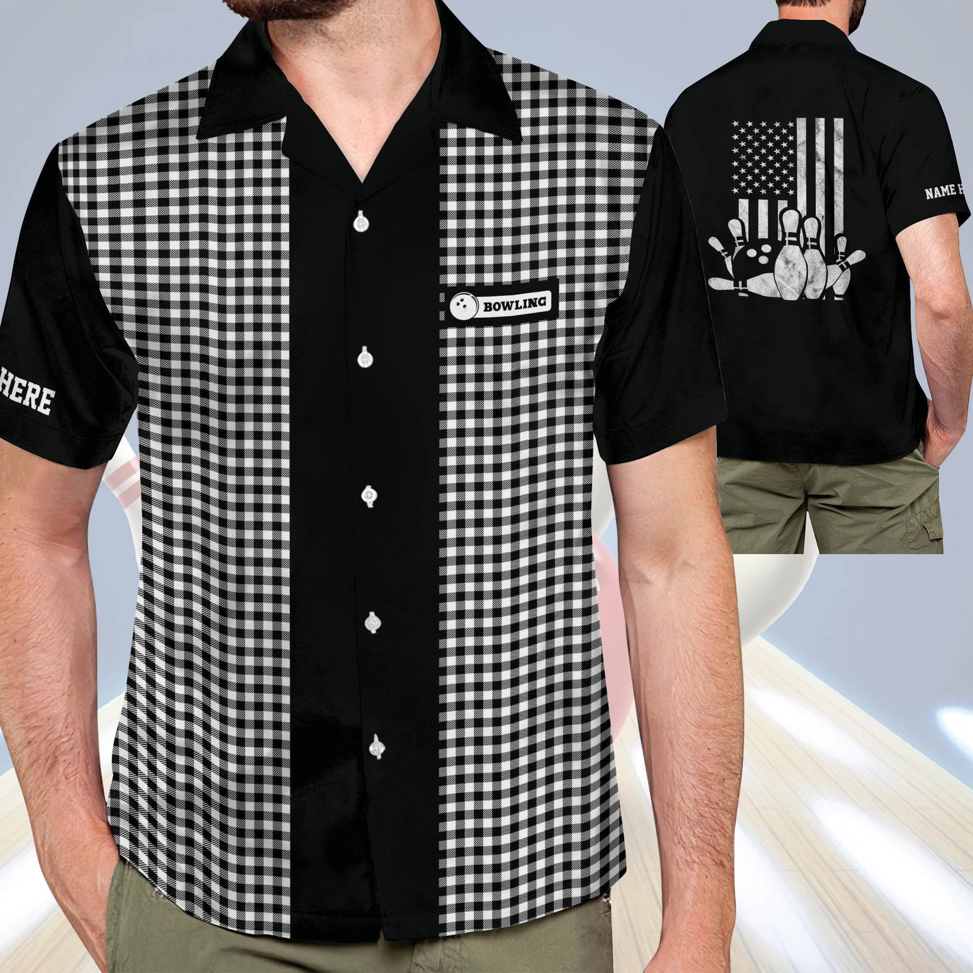 BlueJose USA Flag Patriotic Bowling Personalized Name Hawaiian Shirt