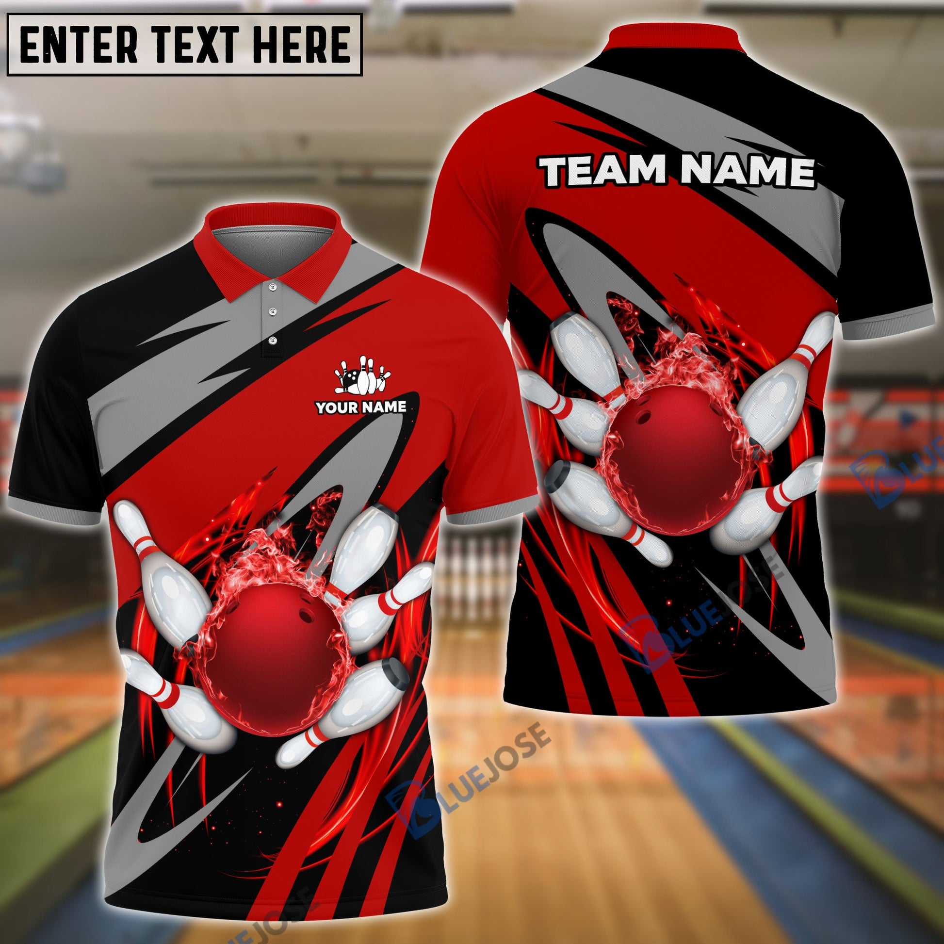 BlueJose Vortex Bowling And Pins Customized Name, Team Name 3D Shirt (4 Colors)