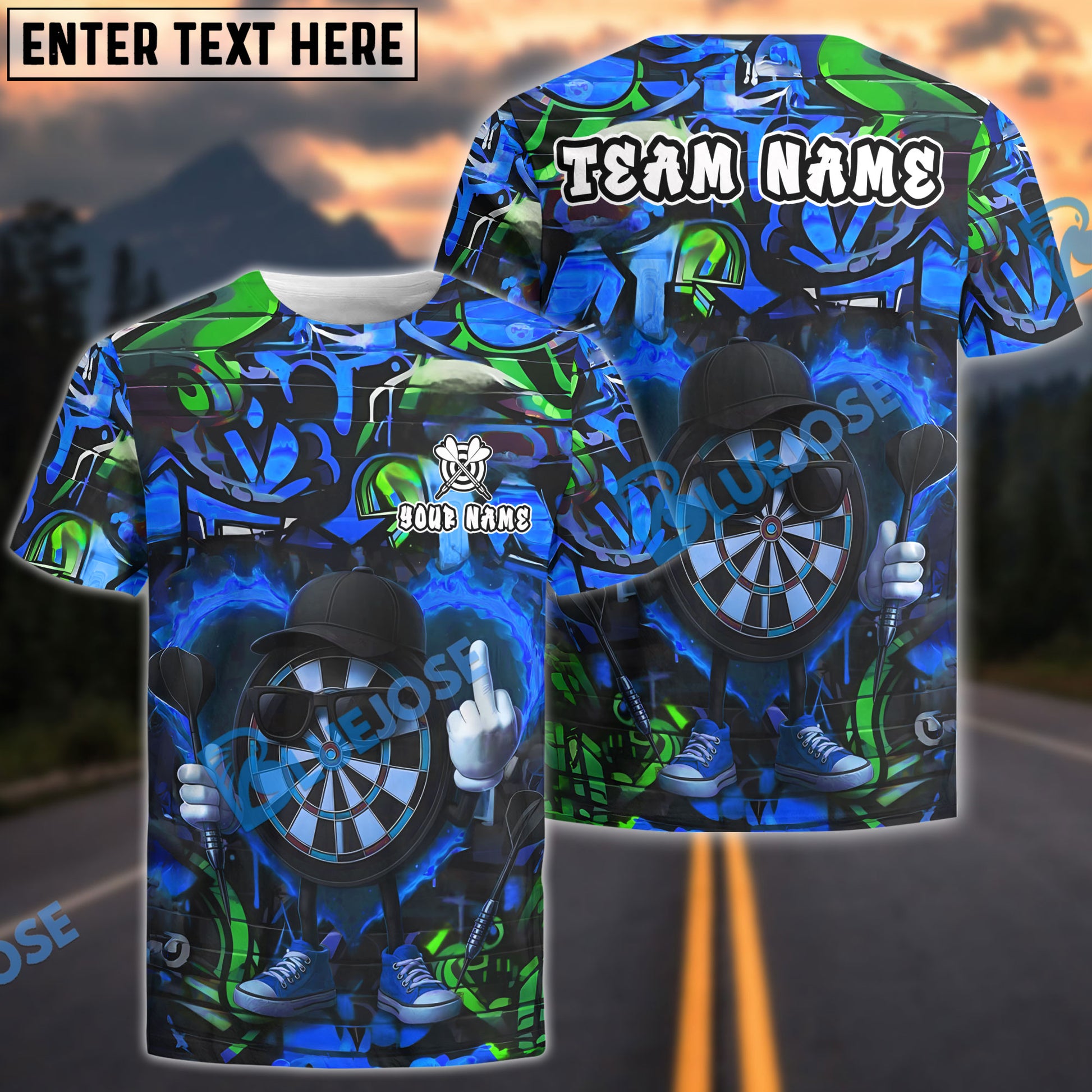 BlueJose Darts Flaming Dartboard Attitude Graffiti Pattern Personalized Shirt (4 Colors)