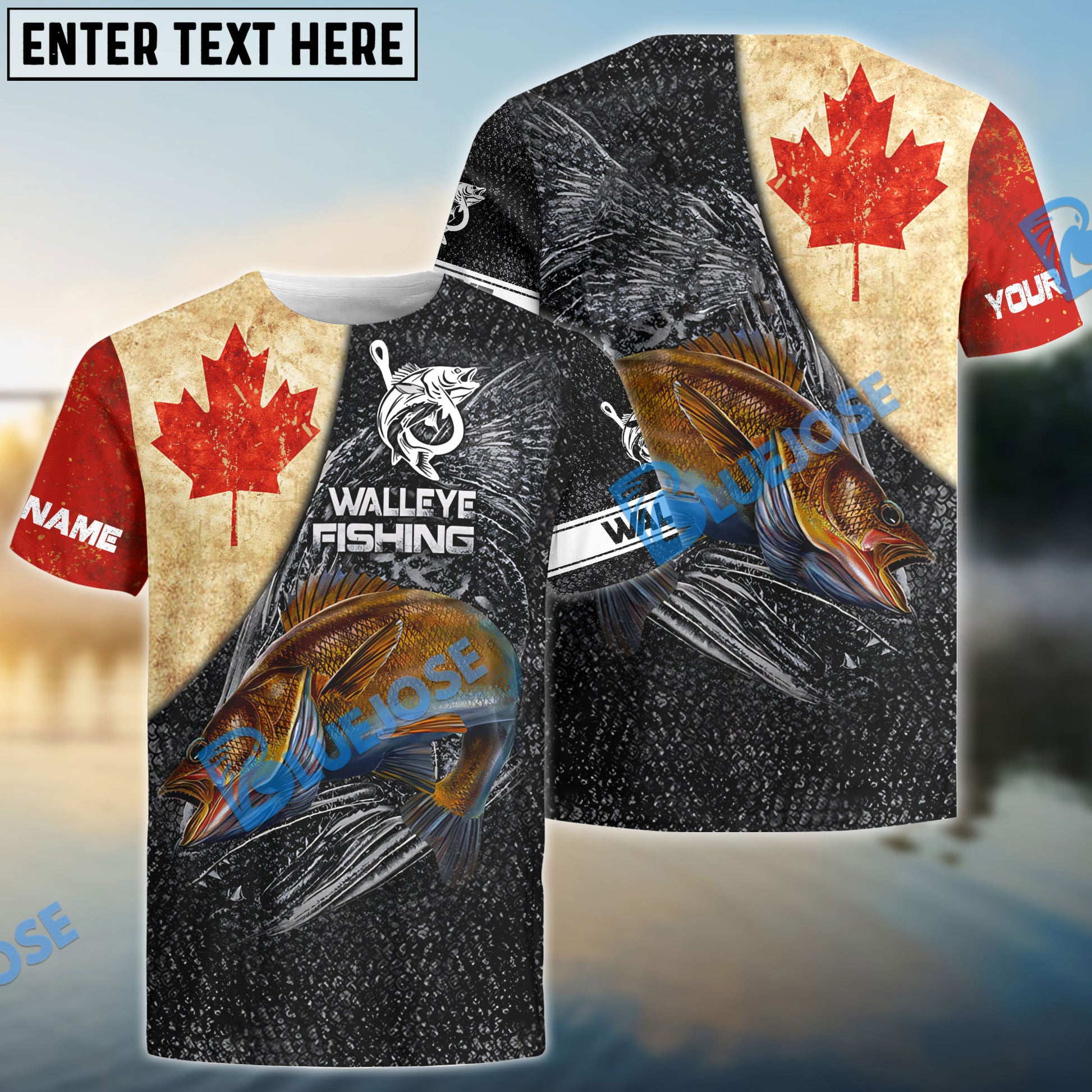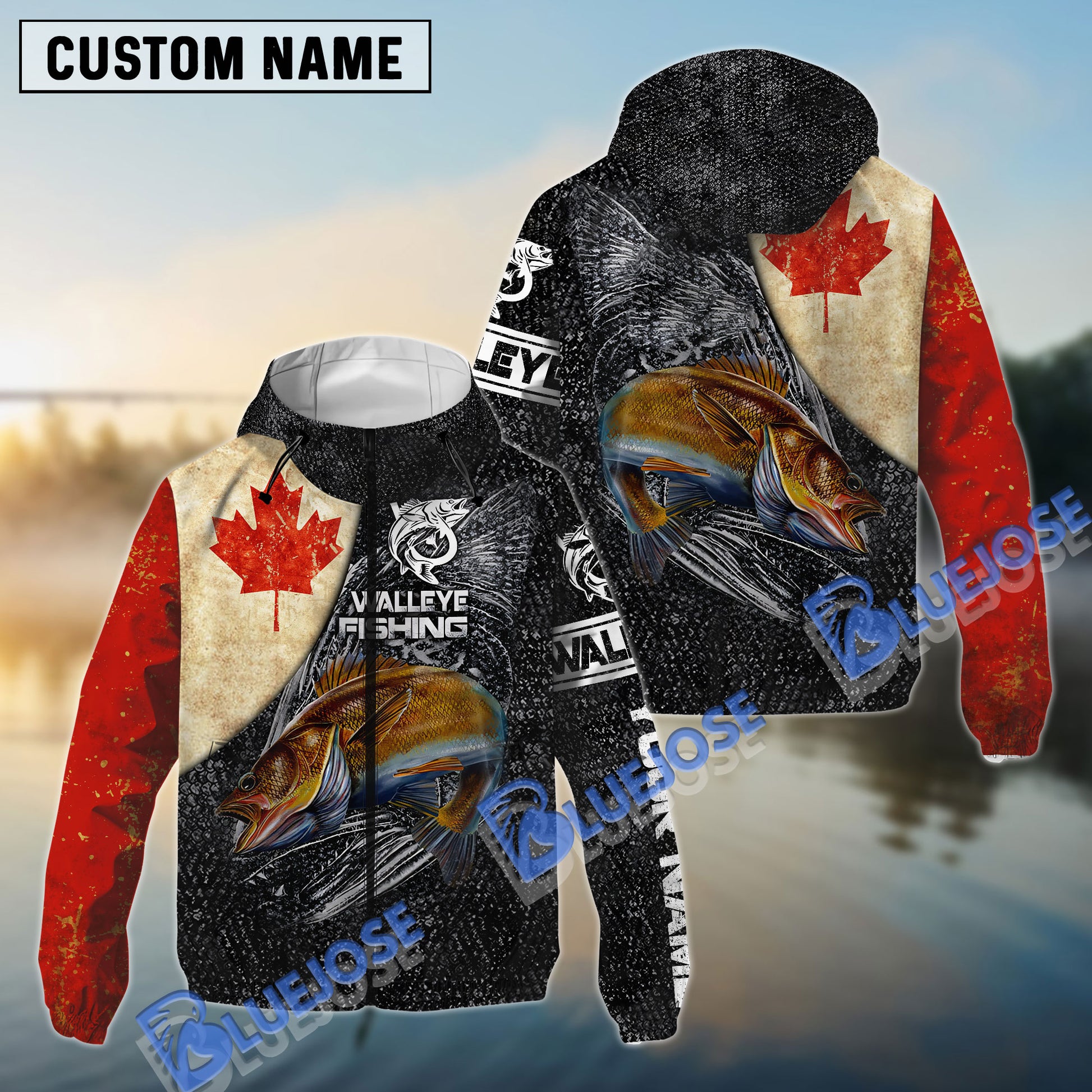 Bluejose Vintage Canadian Flag Walleye Fishing Custom Long Sleeve Performance Fishing Shirts